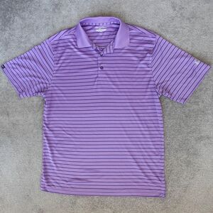 Straight Down Shirt Mens M Purple Striped Golf Stretch Performance Polo Wicking