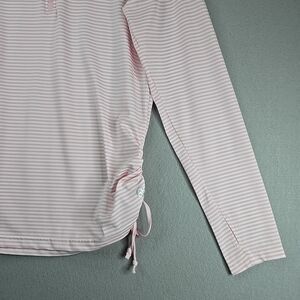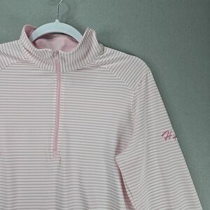 Straight Down Top Women’s Large Striped Quarter Zip Long Sleeve Performance Pink