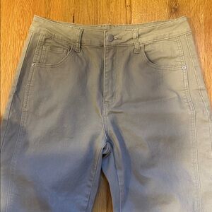 Khaki color straight leg jeans. Worn and washed once. Cotton/spandex blend. Excellent pre owned condition. Approximate measurements: waist 15”, rise 11”, inseam 25”. See sizing chart for these jeans. Would fit a standard size 10/12.