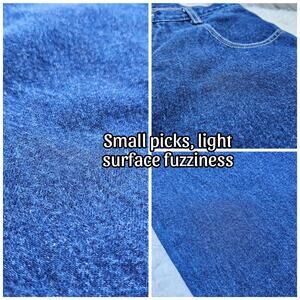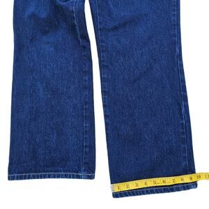 Dark wash 100% cotton heavier weight rigid denim. 5 pocket, button/zipper fly, straight leg silhouette w/ high rise waist. Issues noted in photos. Excellent preowned condition, overall. Size 14 Average by Lane Bryant's Venezia Line.