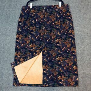 Straight Long Skirt Women 24W RL Richard Winter Floral On Black Back Zipper Slit