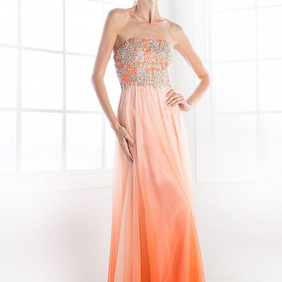 Long Formal Evening Dresses with straight neckline, strapless dress, open back with zippered closure, a-line shape.