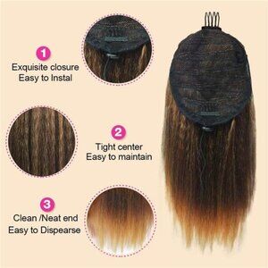 The ponytail extension for women has two fixed clips and buckle drawstring to help you to secure and tighten the ponytail. what's more the size is adjustable, so drawstring ponytail for black women could fit most people. The ponytail for black women could instantly add thicker and longer hair in one minutes and change your hair styles easily, which (straight ponytail extension) is not damage to your natural hair.