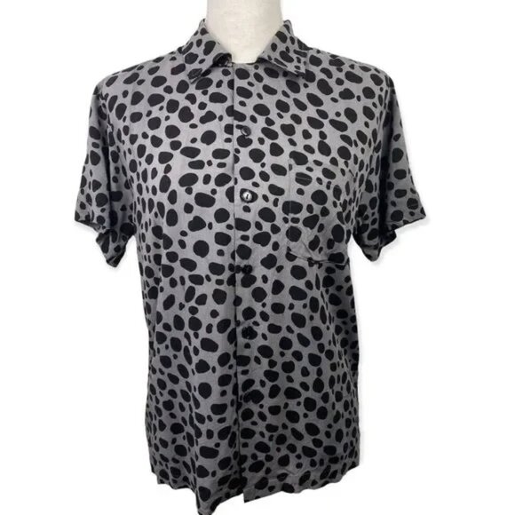 Straight To Hell Black Gray Leopard Print Button-Down Short Sleeve Shirt Small