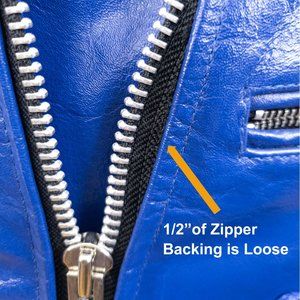 This new without tag Straight To Hell Defector Leather Jacket was worn once and is in Royal Blue (a retired color from Straight to Hell). The Defector jacket features polished nickel ball pull zippers on the sleeve cuffs, forearms, and front pockets, along with side straps, and a curved hem. The premium leather has not been broken in and will relax and conform to your shape perfectly. The jacket shows no signs of creasing, no cuts or stains and the leather is still stiff. The front zipper backing is loose but can easily be repaired.