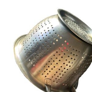 Strainer. This food strainer is in perfectct condition, used like new. Great for all types of hot meals. Deep bowl allows for large quantities of food. 7” high by 8” wide.