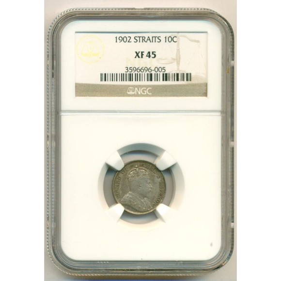 Straits Settlements (Malaysia) Silver 1902 10 Cents Edward VII XF45 NGC