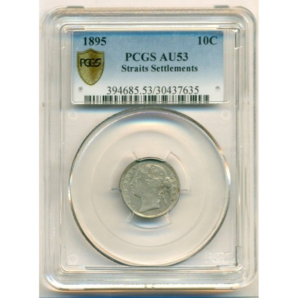 Straits Settlements -Malaysia- Victoria 1895 Silver 10 Cents AU53 PCGS