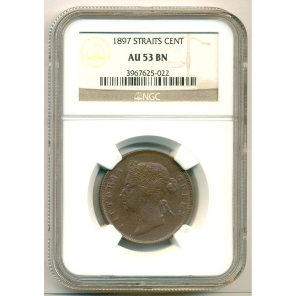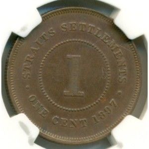 Straits Settlements -Malaysia- Victoria 1897 Cent AU53 BN NGC