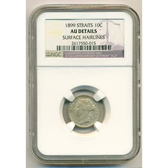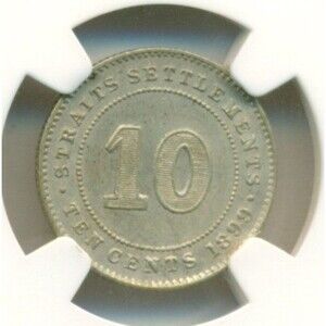 Straits Settlements (Malaysia) Victoria 1899 Silver 10 Cents AU Details NGC