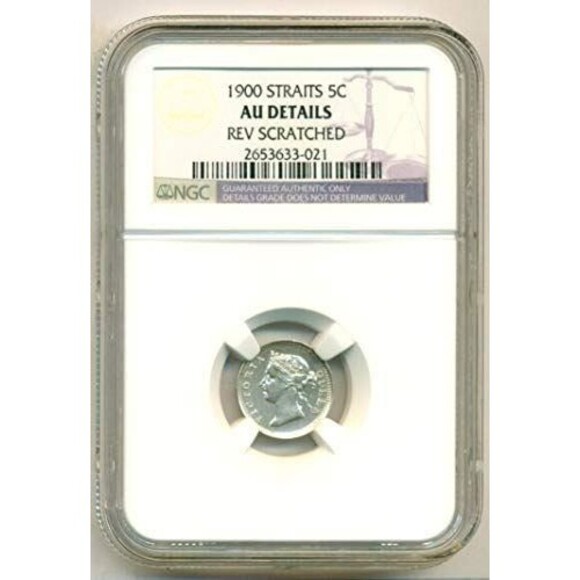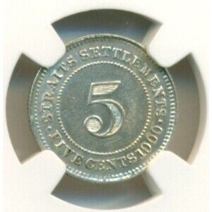 Straits Settlements (Malaysia) Victoria 1900 Silver 5 Cents AU Details NGC