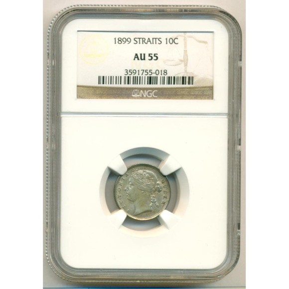 Straits Settlements -Malaysia- Victoria Silver 1899 10 Cents AU55 NGC