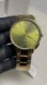 Watch features a round Gold stainless steel 42mm Case and a sunburst Olive Green 12-hour dial that’s adorned with Roman Numerals and baton indices.