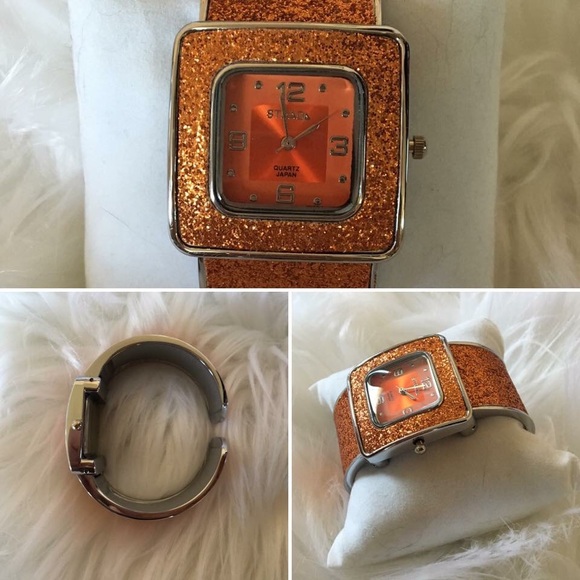 Never worn, perfect condition. Womens orange Strada watch.