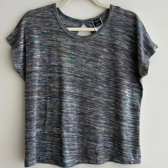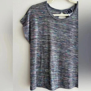 Stranded Grey/Pink/Blue/Green Heathered Short Sleeve Shirt, Keyhole Back, Large