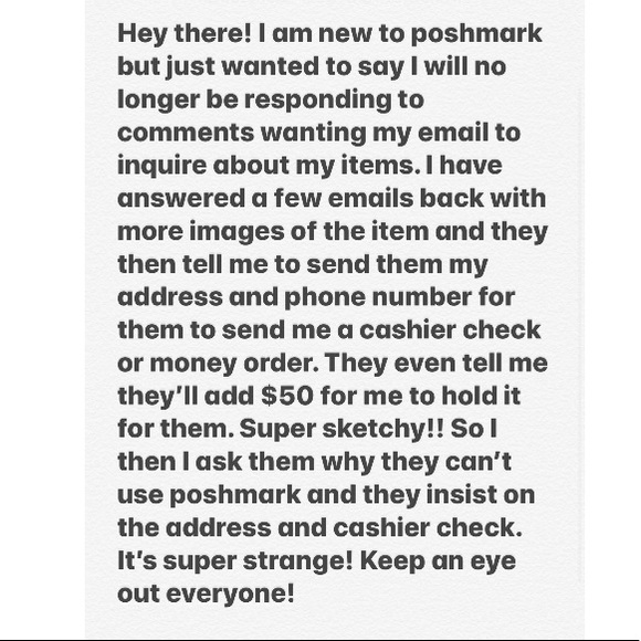 @victoria_hudson I just came across your post and I had a situation on Depop with one really odd "young lady" ( you. ever know who is really behind the screen) who liked my item and was trying to negotiate and then was pushing after I said I couldn't drop the price that low to send me ten bills on Cashhapp "just because". I politely declined but this person would not let up! I screen shot the entire conversation just in case and blocked them.