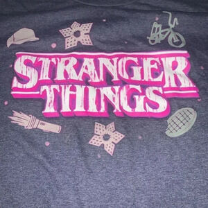 Stranger Things Blue T-Shirt with Pink Logo Sz Large Adult NEW NWT