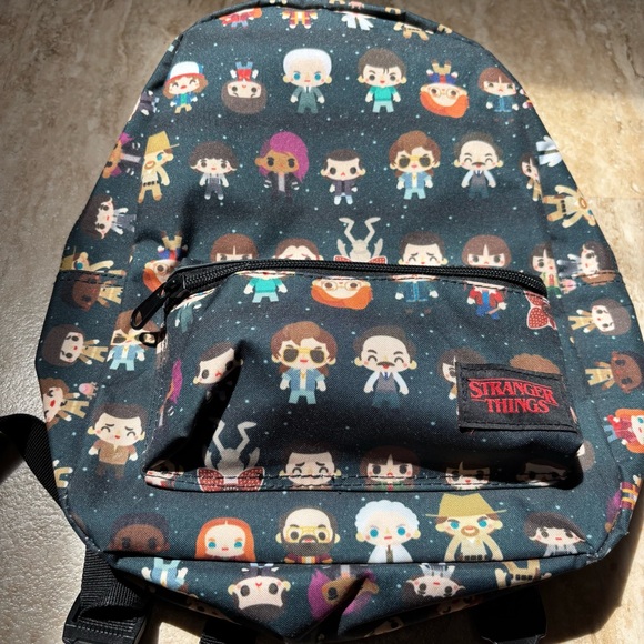 Vibrant backpack with a playful Stranger Things character pattern. Ideal for fans. Very nice condition. Zippers work well. No rips/tears/holes. 🎒 Approximately 13x9x3. Fits lots of goodies! Smoke free home. Ships quickly!