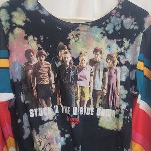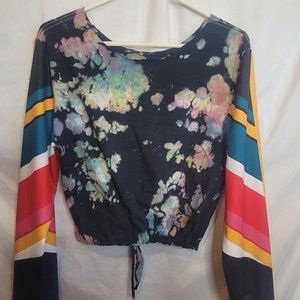Stranger Things Crop Top Long Sleeve Upcycled Blouse Bleached Tie Dyed OSFM