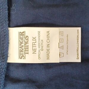 Netflix Stranger Things 'Dusty' Jacket! Size XL, pit to pit measures 25". Fabric is 97% cotton, 3% spandex, navy blue. Zip front, snap closures, elastic at the wrists, and 2 front slip pockets. Distributed by Spirit Halloween. Brand new with tags!