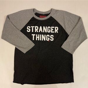 Stranger Things Graphic Black & Gray 3/4 Sleeve Tee T-shirt Size Medium