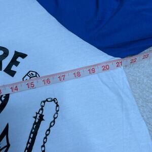 Stranger Things Hellfire Club Baseball Tee Large. Tee is handmade, print is vinyl. Sleeves are blue. Please see approx measurements in photos.