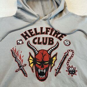 Stanger Things Hellfire Club Mens Long Sleeve Hoodie Size 3XL NOTE - small pin holes and spot on pouch as shown in photos