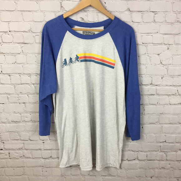 Stranger Things | Men's Raglan Tee T-Shirt Blue Gray Bike Rides Size 2XL XXL