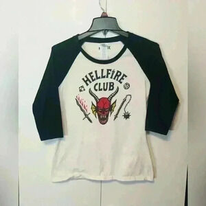 Stranger Things Netflix Hellfire Club Baseball Style Shirt Women size Small
