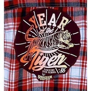 Stranger Things Plaid Flannel Shirt MEDIUM Oversize Unique Hawkins Tigers