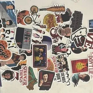 Vibrant Stranger Things themed stickers. Perfect for fans and collectors.
