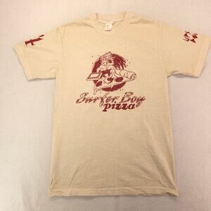 Stranger Things Surfer Bros Pizza Crew Neck Graphic T Shirt Mens Size S Tan