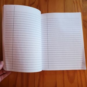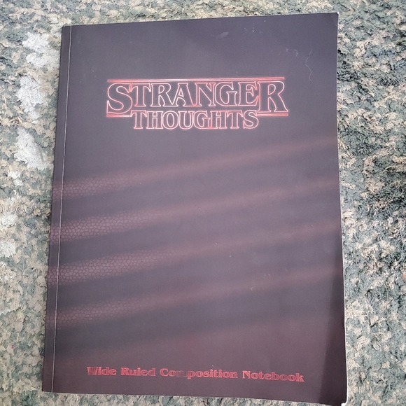 "Stranger Thoughts" 7.4"x9.6" wide ruled composition notebook.