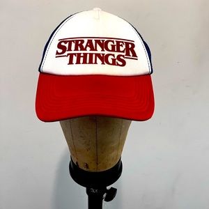 Stranger Things snapback, hat, red, white, and blue
