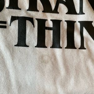 Five of these shirts are a size Small and short sleeve soft t-shirts. The long-sleeve (gray, top left) is a Medium and of thicker fabric. White tee has a small stain under the logo that I just didn’t try to get out. Prefer to sell as a bundle. Socks included.