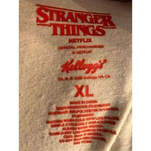 Stranger Things Netflix Kellogg graphic tee 3/4 sleeves. Jersey knit feel, lightweight, scoop neck. Novelty tee
