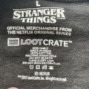 Stranger Things Black Short Sleeve Tee-shirt by Lootcrate and Netflix. In excellent condition with no pilling, tears, stains or pulls.