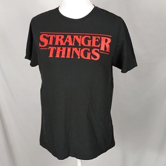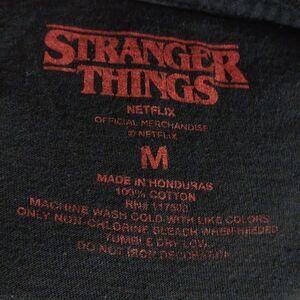 This black with red lettering short sleeve Netflix Stranger Things tee is a size Medium with a pit to pit measuring 21". 100% cotton and machine washable. Pre-owned and in excellent condition. All offers welcome.