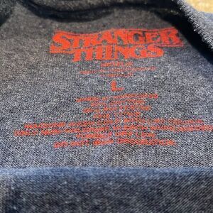Stranger Things long sleeve shirt, size Large for sale. Features screenprinted graphics on the front in excellent condition. Celebrate this years hottest show with this shirt!