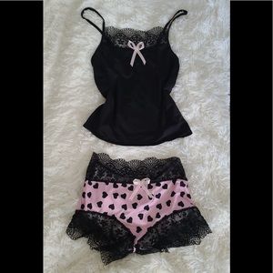 Strap Lace Pajama Set Sleeveless heart print pink black Pyjamas Sleep Shorts Set Lace Pijama Suit Sleepwear Women Sexy Nighties Dropship PIJA07