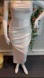 Gorgeous figure hugging White Pearl dress. and the best past! zig zag tie in the back.