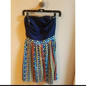 Super cute strapless dress that can be worn casual or formal! Navy on top with a cute Aztec design underneath, got a lot of compliments :) looks brand new