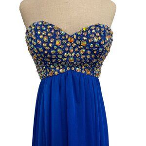 Strapless B. Smart Royal Blue High-Low Dress With Beaded Bodice