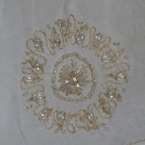 Beautiful white strapless BCBGMaxAzria top. Size M-L. Can also be worn as a skirt. Beautiful beaded floral details. Never worn.