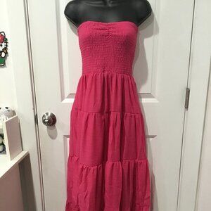 LAST ONE! Beautiful Fuchsia Bandeau Smocked Tiered Maxi Dress