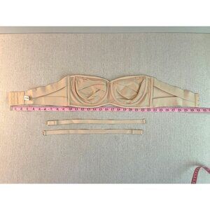 Strapless Beige Bandeau Bra 42/95B With Adjustable Straps & Hook Closure Nylon/S