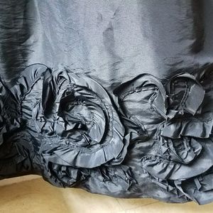 Strapless black dress with flower detail at the bottom, and small ruffles at the top. Very pretty just doesn't fit me.