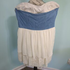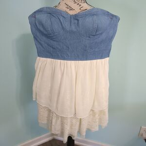 Strapless Chambray Denim Lace Chiffon Sundress Dress 3 rodeo cowgirl Western Y2K