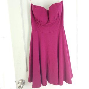 Raspberry knee length circle dress with a padded bodice, fully functional invisible zipper and hook-and-eye closures, and deep pockets! Worn once for a wedding.