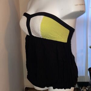 Strapless, color-blocked top. Black, white and a neon yellow-green. Previously loved, and well respected. 🥰
